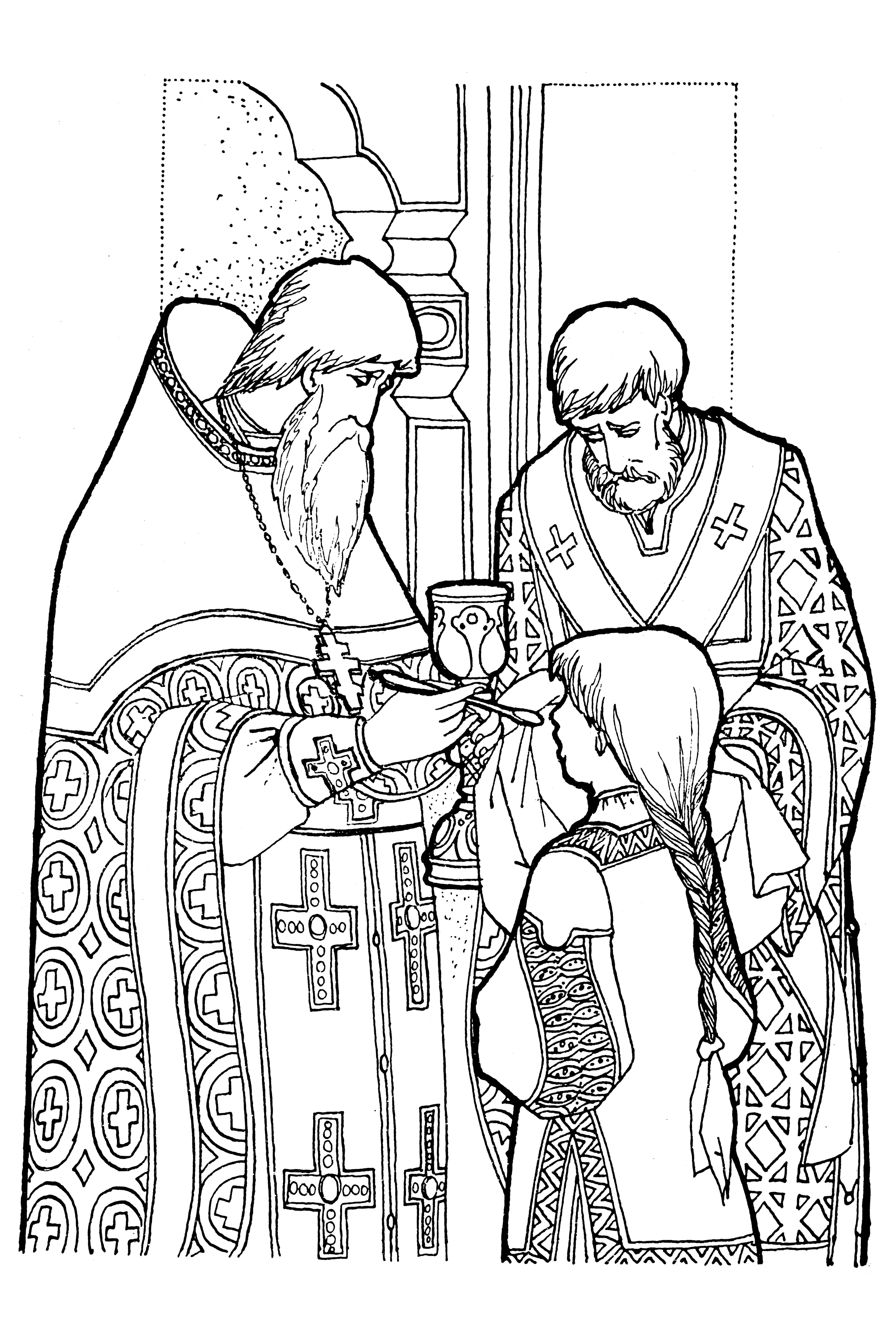 The original liturgy lasted something over five hours; those people must have been on fire for God. The Liturgy of St. Basil edited this down to about two and a half, and later (around 400 A.D.) the Liturgy of St. John Chrysostom further reduced it to about one and a half. Most Sundays we use the St. John Chrysostom liturgy, although for some services (e.g., Sundays in Lent, Christmas Eve) we use the longer Liturgy of St. Basil.